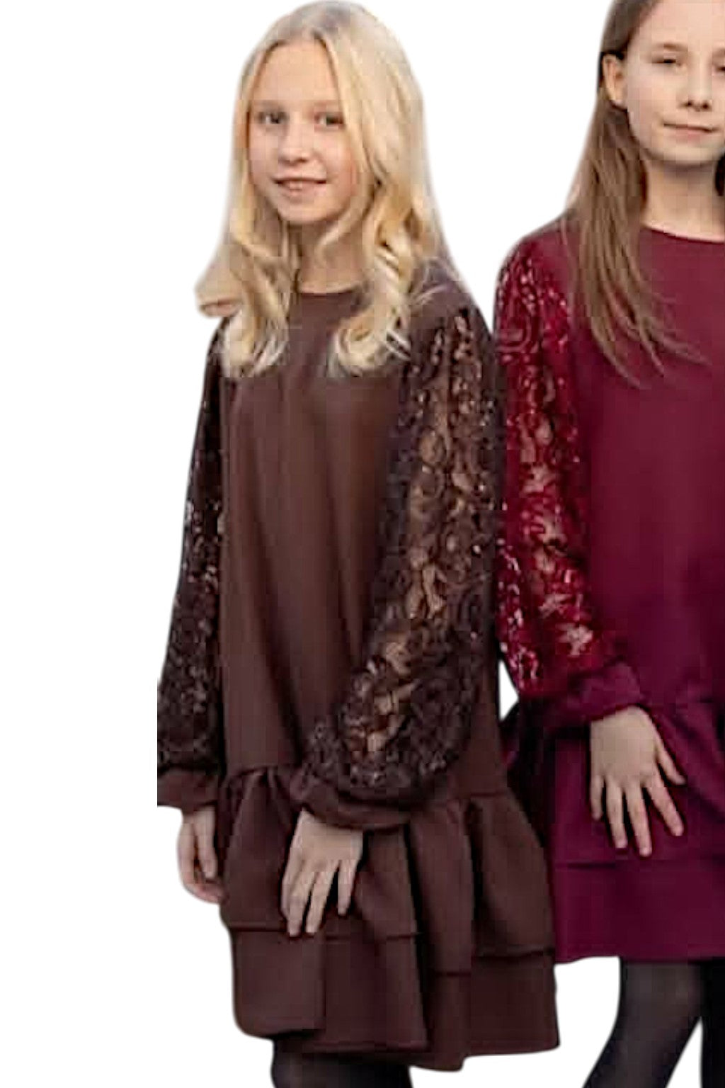 Elegancka sukienka dziewczęca z koronką w kolorze czekoladowym
