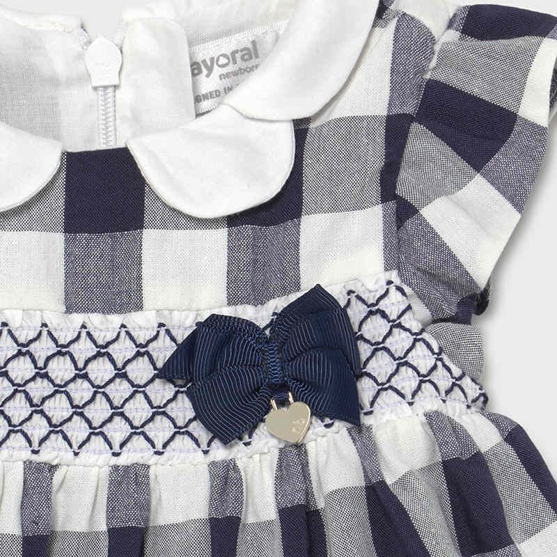 Checkered dress for children with panties girl Mayoral from the newborn girl collection from the spring-summer season product code 1833 color 59 Navy blue. Clothing for newborns.