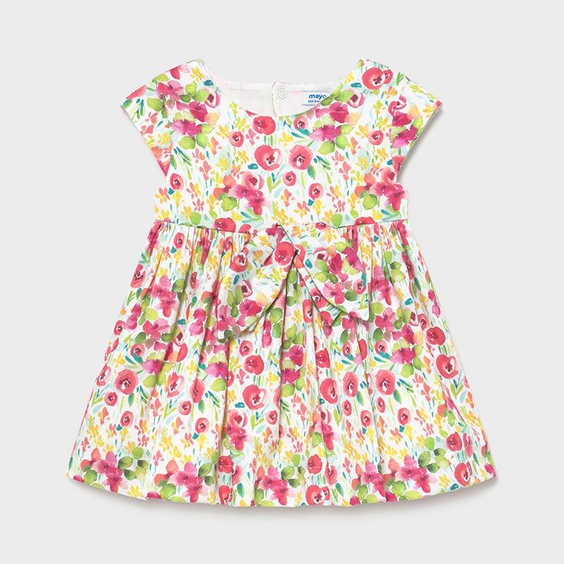 Elegant dress for children with short sleeves and a floral print for girls Mayoral from the baby girl collection from the spring-summer season, product code 1973, color 10 Colorful. Children's clothing.