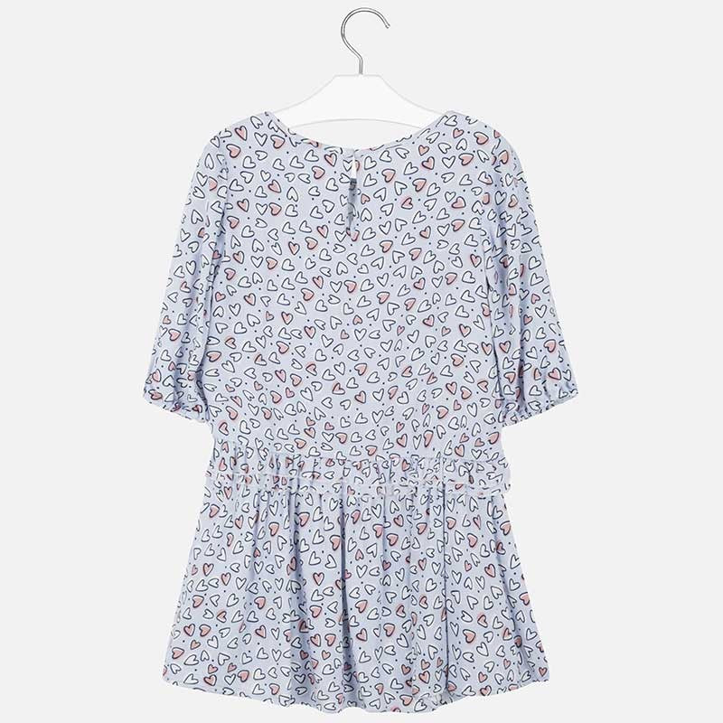Children's viscose dress with heart print girl Mayoral from the junior girl collection from the spring summer season product code 6975 color 88 Blue. Children's youth clothing.