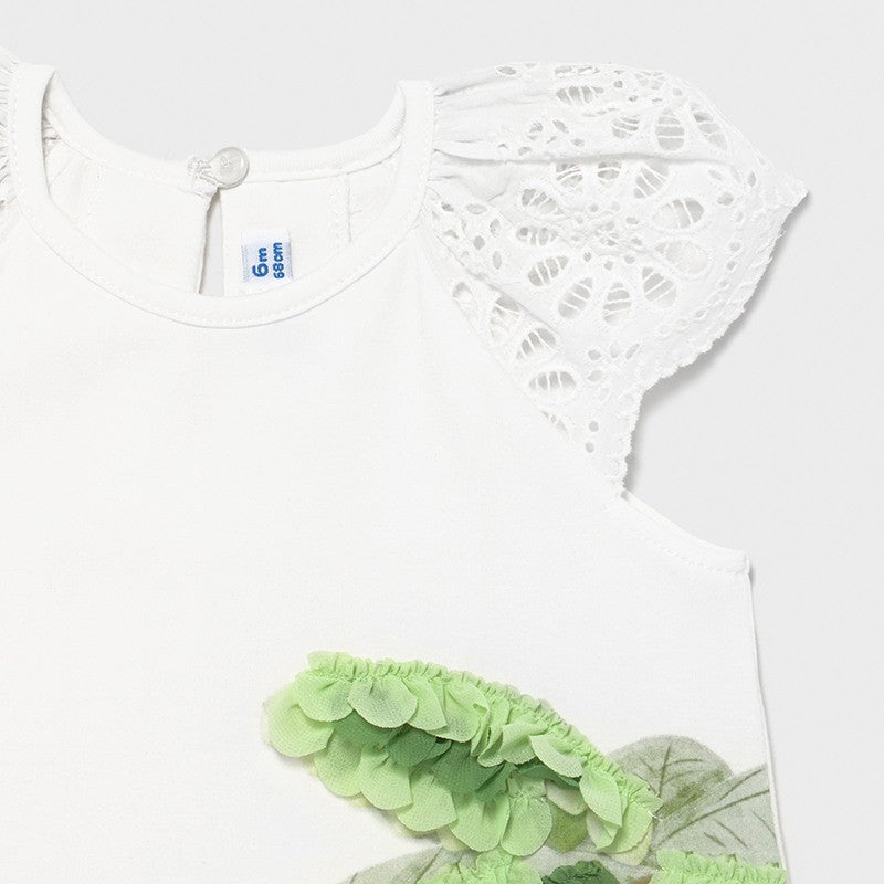 Children's cotton dress with straps and print for girls Mayoral from the baby girl collection from the spring-summer season, product code 1983, color 90 White/orange. Children's clothing.